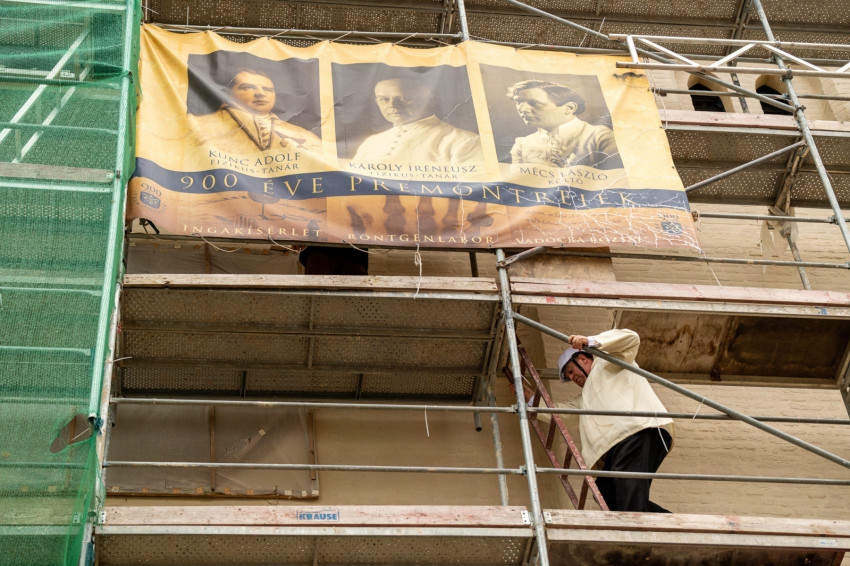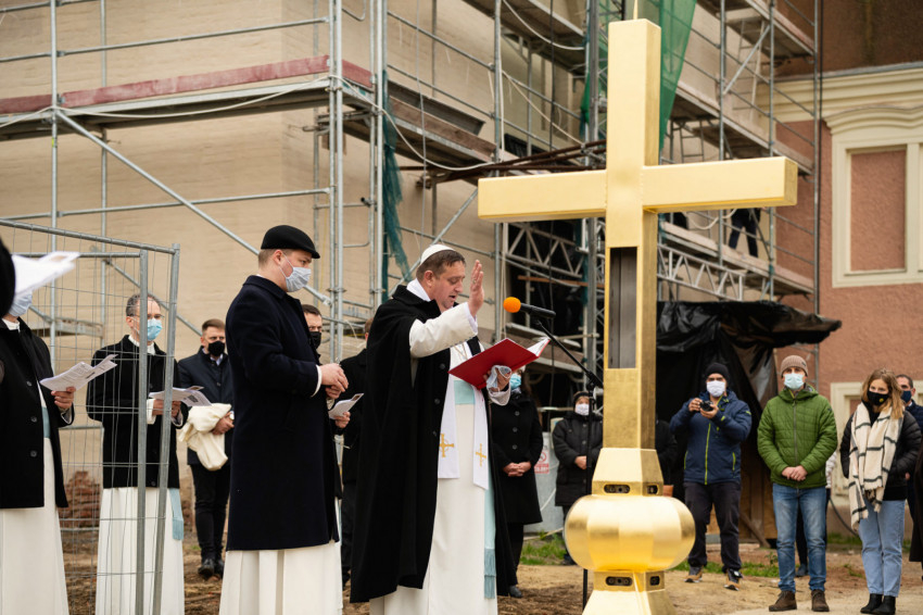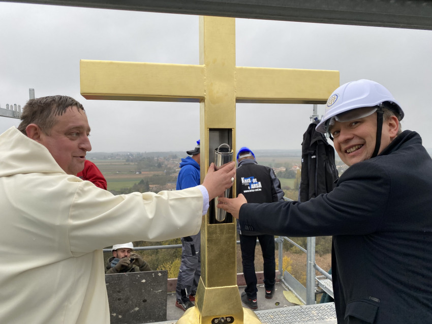 Márton apát maga is felmászott a templom 37 méter magas tornyába, hogy elhelyezze a kereszt belsejébe azt az időkapszulát, amely az utókor számára mintegy lenyomatként őriz meg egy darabkát jelenünkből: egy pár újságot, pénzérméket, a megáldás dokumentációját, valamint egy csoportképet a csornai premontrei szerzetesekről.