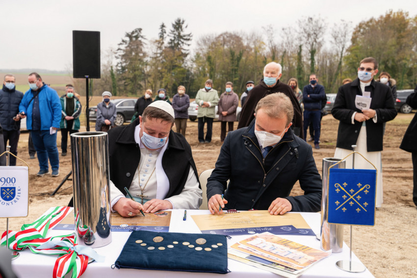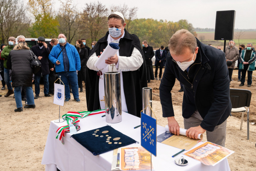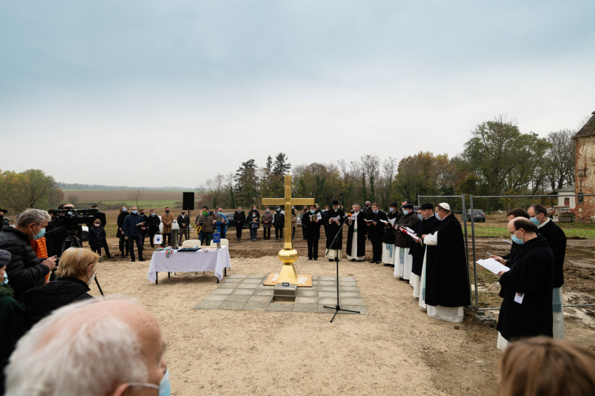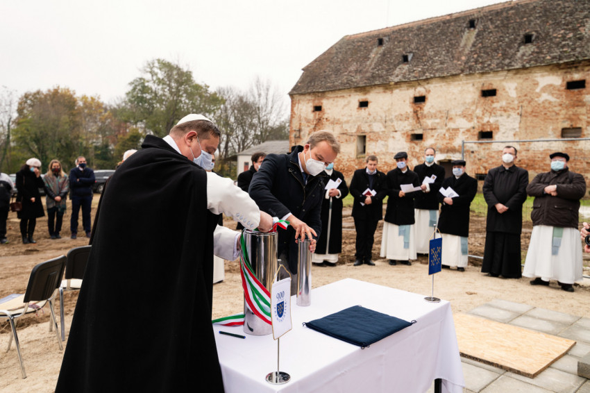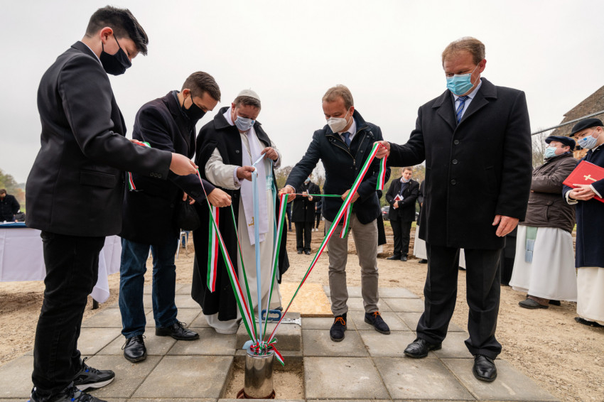 Az ünnepi beszéd után Fazakas Márton, Füleky Zsolt, Nagy Ferenc, Bakucz András és Cserép Krisztián ünnepélyesen elhelyezték a premontrei templom szomszédságában épülő látogatóközpont és majorság alapkövét.