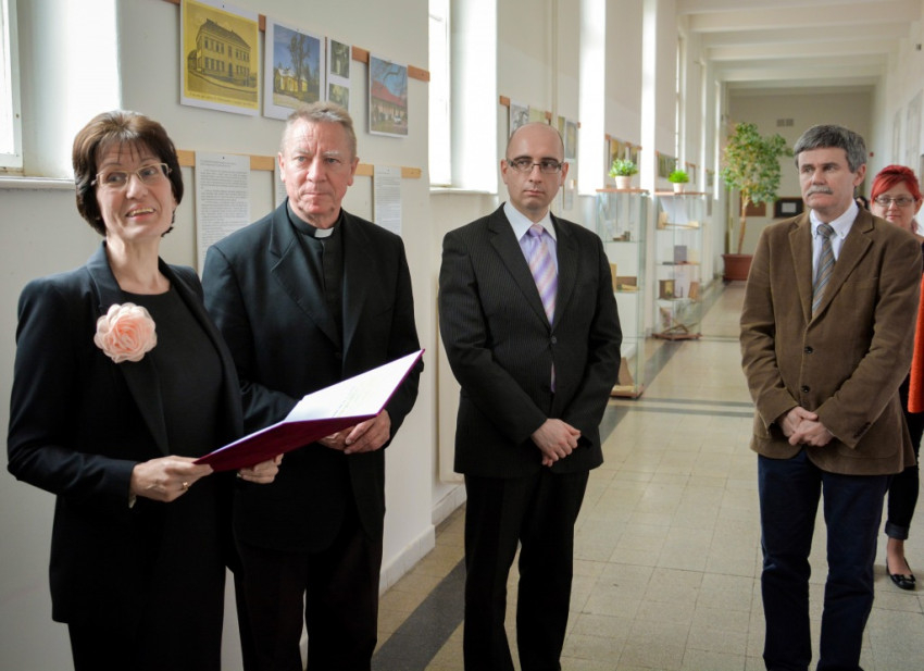 Az iskolatörténeti kiállítás alapanyagául szolgáló, a hazai neveléstörténet keresztmetszetét bemutató gyűjteményt Mátyásffyné Jenei Gabriella adományozta az Apor Vilmos Katolikus Főiskolának. A tanárnő a váci Juhász Gyula Általános Iskola nyugalmazott igazgatónője, aki évek hosszú során nagyon sokat tett a gyűjtemény felkutatásáért és összeállításáért. 2007-ben így nyilatkozott az egyik helyi lapnak: „Minden vágyam egy váci iskolatörténeti kiállítás létrehozása, a megfelelő kiállítótérben, ahol ízelítőt adhatok Vác iskoláinak történetéből, a kezdetektől az államosításig.” „Nagyon örülünk, hogy segíteni tudtunk a tanárnő e szép tervének megvalósításában” – emelte ki a rektor asszony köszöntőjében.