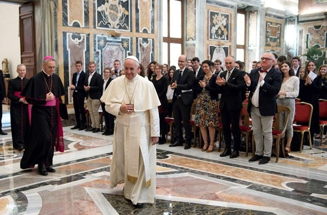 Közgazdasági tanulmányaik révén a nemzetközi pénzügyi világ szakembereivé válnak, akiknek képzését azonban hála Istennek erős humán, filozófiai és spirituális dimenzió is jellemzi – kezdte beszédét a pápa, majd rámutatott: alapvetően fontos, hogy már most megtanuljanak ellenállni a pénz vonzásának, annak a szolgaságnak, amelybe a pénz zárja azokat, akik kultuszt csinálnak belőle. Ugyanilyen fontos az is, hogy bátrak és határozottak legyenek, és ne engedelmeskedjenek vakon a piac láthatatlan kezének. Legyenek a méltányos növekedés előmozdítói, közös otthonunk, a világ igazságos és helyes igazgatásának kézművesei.