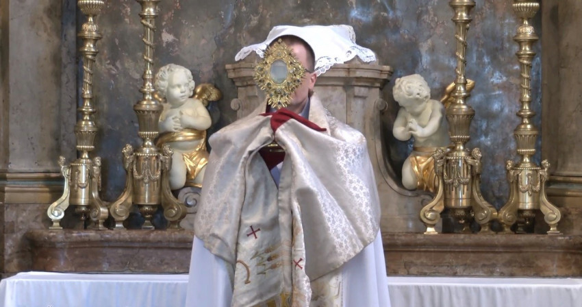 Az irodaigazgató a másnapi ünnepre, úrnapjára utalva Páduai Szent Antal egyik legendájának felelevenítésével zárta prédikációját. Egyszer rendkívüli csoda történt Antallal: egy eretnek, aki tagadta Krisztus valóságos jelenlétét az Eucharisztiában, azt mondta, hogy addig nem hisz az eucharisztikus Istenben, ameddig a szamara le nem térdel az Oltáriszentség előtt. Néhány nappal később Antal egy beteghez vitte a legméltóságosabb Oltáriszentséget, és találkozott e gúnyolódó emberrel, akinek az öszvére ebben a pillanatban hirtelen két első lábára ereszkedett, és meghajtotta fejét a Szentség előtt.