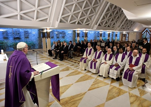 Az olvasmány (Ter 17,3–9) arról a szövetségről szól, amelyet Isten kötött Ábrahámmal, akit a mai evangéliumi szakaszban (Jn 8,51–59) Jézus és a farizeusok atyjuknak neveznek, mert ő nemzette azt a népet, amely ma az Egyház – kezdte homíliáját a szentatya.