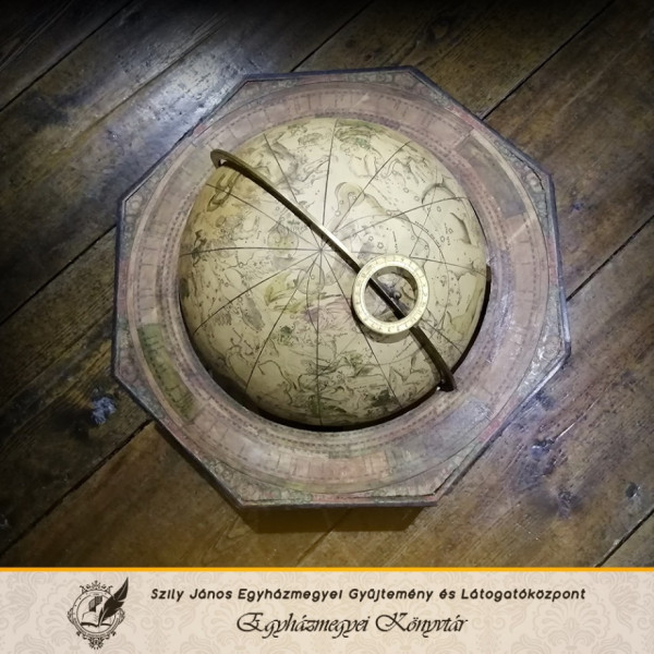 A csillaggömb (armilláris szféra) északi pólusán kis órakör található. A Föld egyenlítőjét, a rák- és baktérítőt, az északi és déli sarkkört ábrázolja. A horizontgyűrű nyolc sarkában régi csillagászati műszerekről készült metszetek láthatók. Gyűjteménybe kerülésének körülményeiről nincs adat.