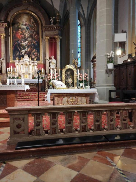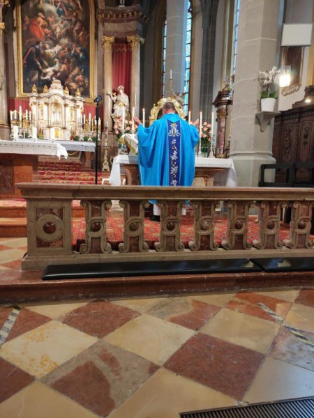A kegytemplom renoválása miatt a közeli apátsági templomban (Stiftkrirche), az altöttingi kegyszobor oltáránál celebrált szentmisét Kovács János, Kirchdorf am Inn plébánosa.