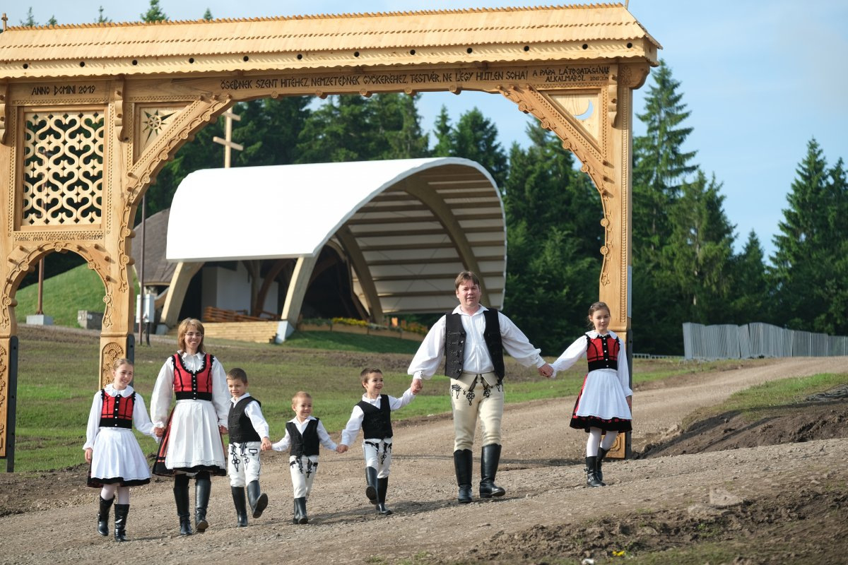 Izsák-Székely Judith és Lóránt is úgy érzi, ez a szombati nap jobban összekovácsolta a családot. „Mi családban gondolkodunk, a székely családokat képviseltük. Ott álltunk családostól székelyruhában a pápa előtt. Ez egy történelmi pillanat volt” – mondja a büszke családapa.