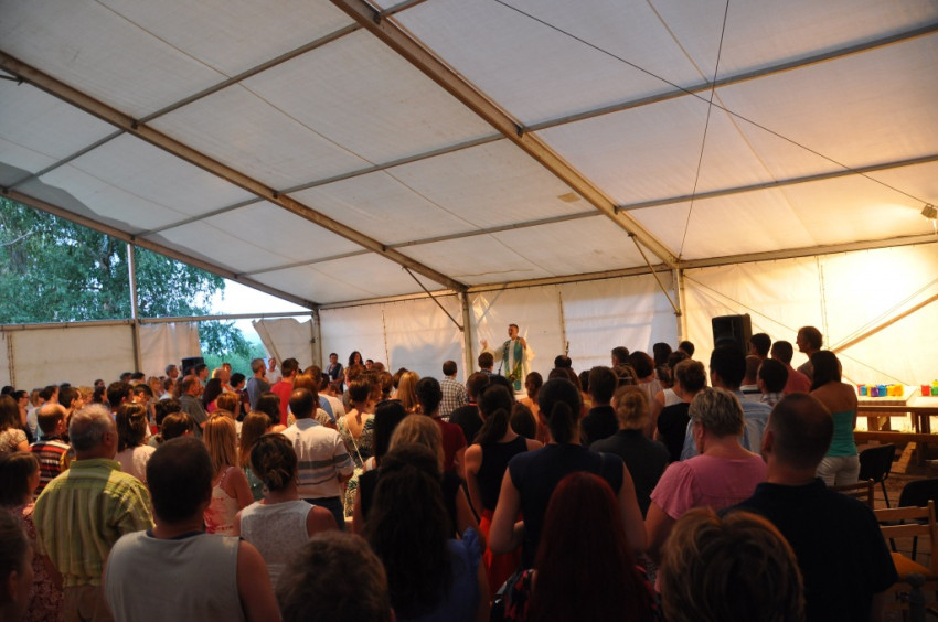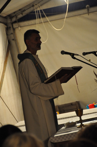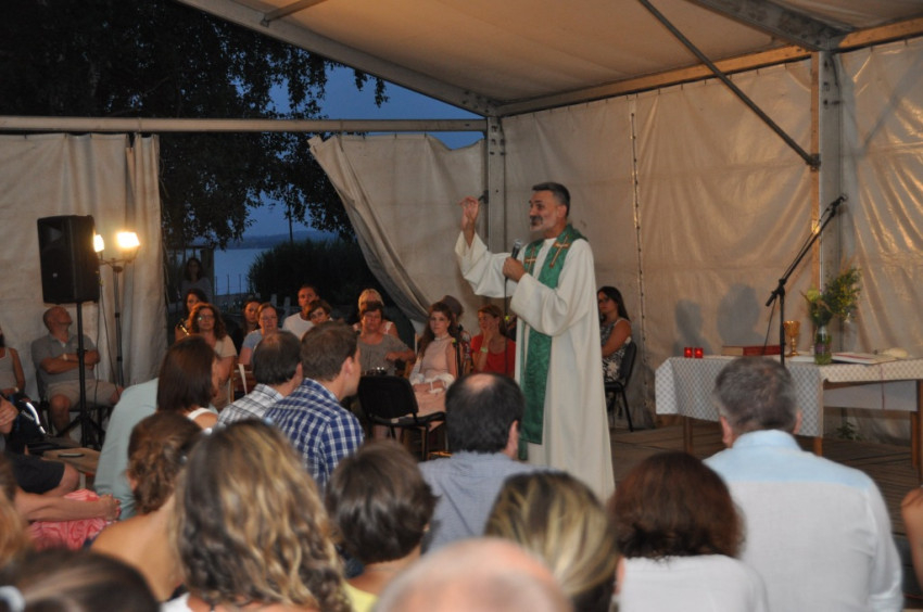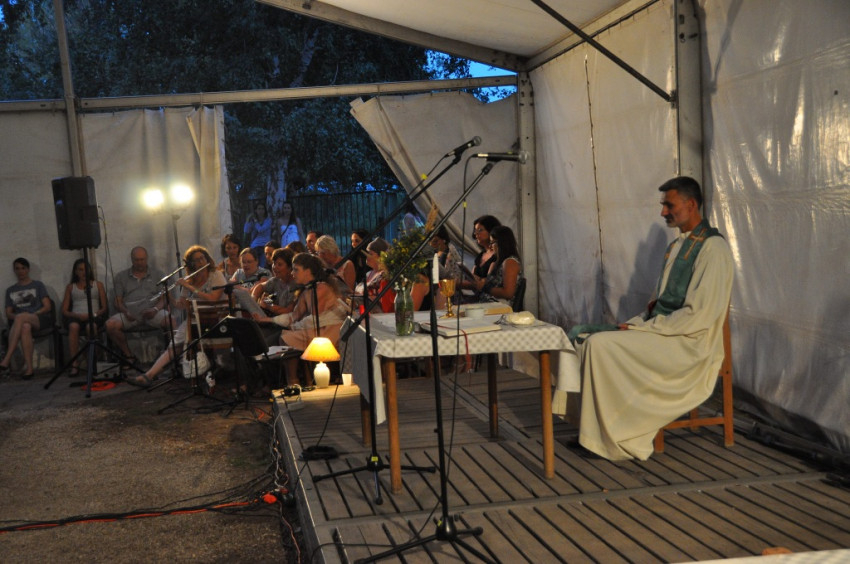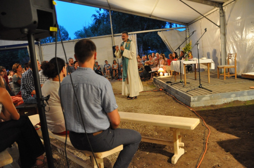 A tábort létrehozó közösség Pál Ferenc lelkipásztor keddi mentálhigiénés előadásai köré szerveződött, emiatt a homogén katolikus közösségekhez képest jóval nyitottabb a más felekezetekhez tartozó keresztények és a keresők felé egyaránt. Ez a jellege a hét csúcspontjának számító, Pál Feri atya által bemutatott szombat esti szentmisén is megmutatkozott. Akár hívők vagyunk, akár nem, közösséggé lehetünk, ha a többiek meggyőződését tiszteletben tartva veszünk részt a szentmisén – fogalmazott a szertartás kezdetén Pál Ferenc. A tábor lelki motorjának számító lelkipásztor rámutatott: Jézus legnagyszerűbb, legfelfoghatatlanabb ajándéka az Eucharisztia, s ezáltal a szentmise, amelybe mindannyian bekapcsolódhatunk.