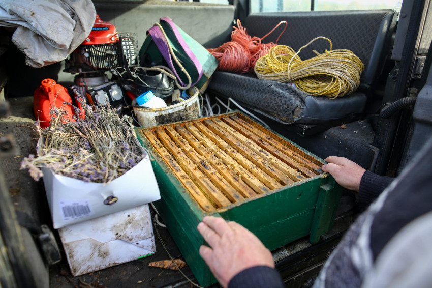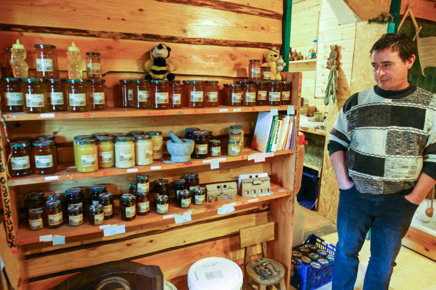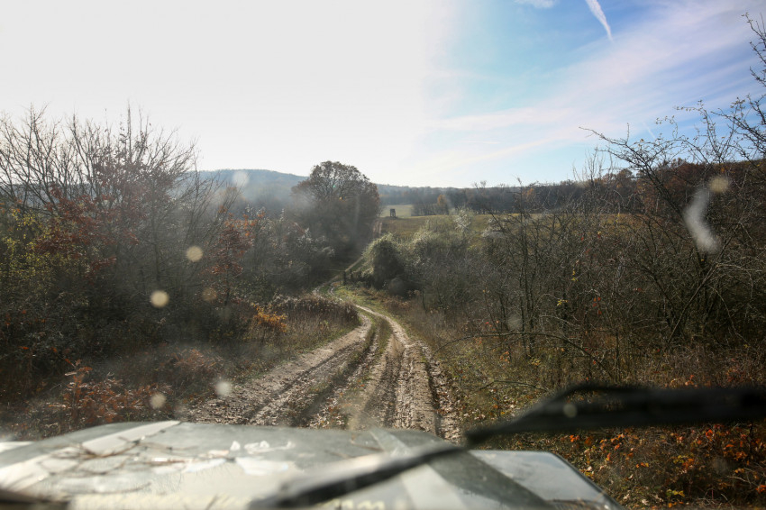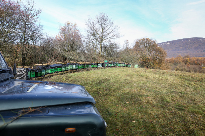 Pilisszentkereszt, csütörtök délelőtt. A téli tavaszban Gabi és Zsolt fogad, de most nem megyünk be, csak a ház mögötti, hívogató „mesekertre” vetünk egy pillantást, amely egy domb aljában van, és szinte beleolvad az erdőbe. „A patakon túl lovak élnek, oda jár lovagolni a fiunk, Emánuel” – mondja Zsolt, ami még meseszerűbbé teszi az egészet. És a hatás még fokozható. Kiderül ugyanis, hogy ha „élesben” akarjuk tanulmányozni a méhészkedést, a nyolc kilométerre levő méhesbe kell mennünk, méghozzá egy National Geographic-riportfilmbe illő, sárfoltos dzsippel. Más autó ugyanis Zsolték szerint nehezen lenne képes elvergődni oda. Ezt először túlzásnak gondolom, de aztán annyira dobál a dzsip, és néha annyira bizonytalan, hogy nem ragadunk-e bele a sárba a hepehupás, kanyargós, egyre dzsungelesebb földúton, hogy gyorsan meggyőződöm az igazságáról.
