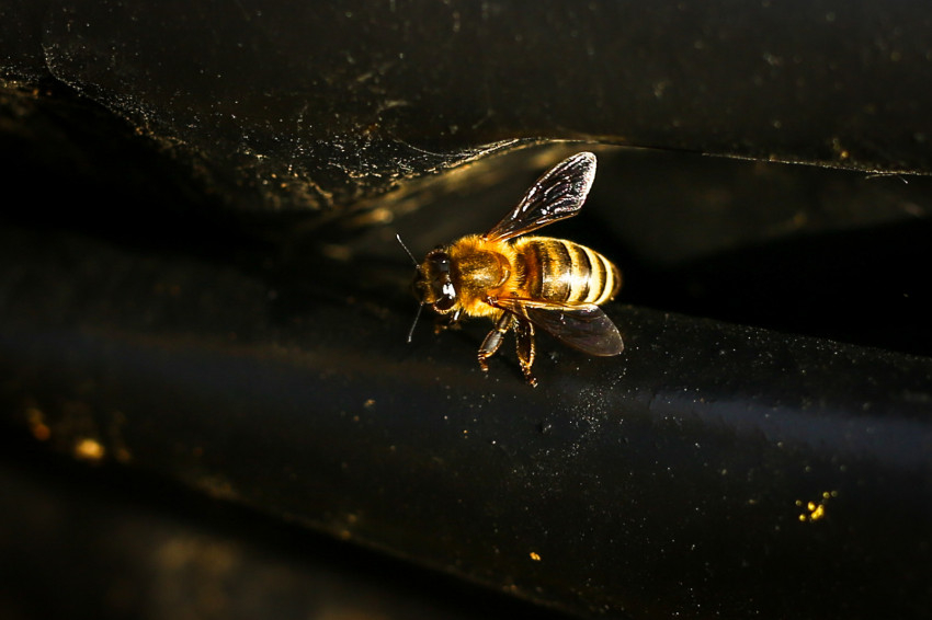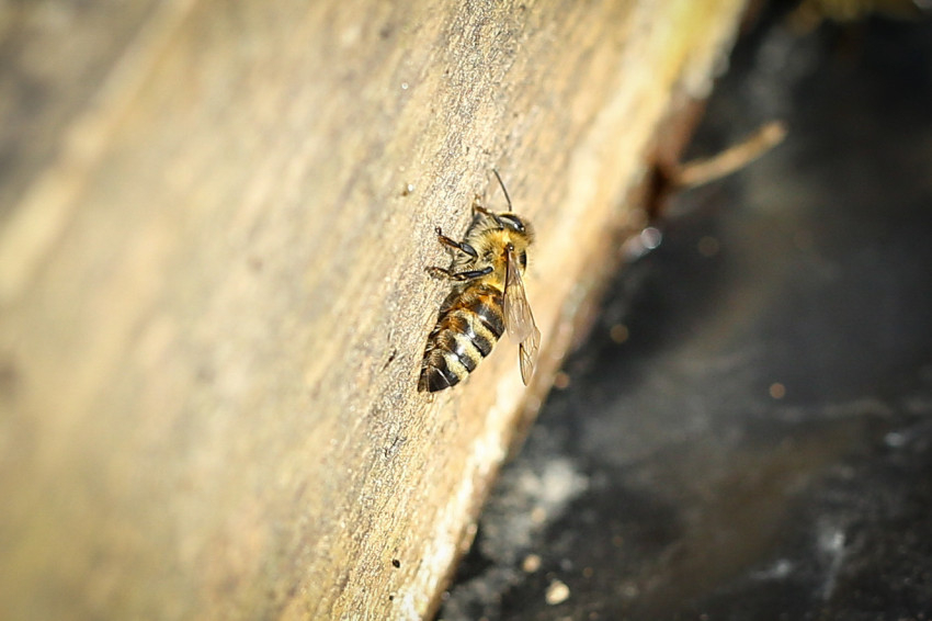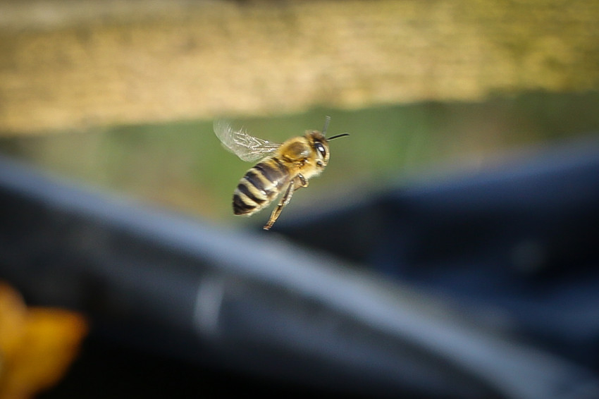 Ma viszont a jó idő miatt szokatlanul virgoncak, jó pár röpköd a kaptárok körül és körülöttünk – ilyenkor vízért mennek, tudjuk meg. Attila – miután vendéglátóink megnyugtatják, hogy nem kell szúrástól tartania – néhányukkal közelebbi ismeretségbe is keveredik, és méhportrékkal bővíti fotós életművét.
