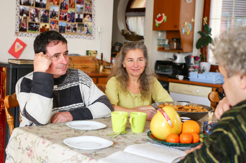 Miután kis kalandunkból Pilisszentkeresztre visszatérünk, és a ház étkezőjében tea és mézes (!) süti mellé telepedünk, arról kérdezem Gabit és Zsoltot, miért azzal a mondattal kezdődik a családfő méhészhonlapos bemutatkozása, hogy nyolcgyermekes családapa. Miért nem a méhekről ír, vagy arról, hogy mit kell tudni róla mint méhészről. A válasz frappáns: mert sok okuk van a hálaadásra mint házaspárnak, mert családban élni annyit jelent, hogy nem önmagunkat puffasztjuk óriásira, hanem belátjuk, hogy kicsik vagyunk, és egymásra szorulunk. Mert az életüknek – ők így érzik – kilencvenöt százaléka a gondviselés műve, ők csak a maradék öt százalékot tehetik mellé – de azt maximálisan, a legjobb tudásuk szerint meg is próbálják odatenni. A méhésznek a gondviselésre hangoltan kell élnie. Nekik ugyan van egy fuvarozó cégük is, vagyis két lábon állnak, de azért májusban, mielőtt kiderül, mennyi mézük lett, mennyi bevételre számíthatnak, mindig előveszi őket a gyomorideg. Ám 33 éve még egyetlen méhészeti szezonban sem kellett csalódniuk. Ha „csak” négy-ötfős lenne a család, már a falu is eltartaná őket, így azonban szállítaniuk is kell ide-oda; magánszemélyeknek is, cégeknek is. Az, hogy „homlokuk verítékével” küzdenek meg a megélhetésükért, önbecsülést ad nekik, az pedig, hogy a vásárlóik visszatérnek, visszaigazolás, hogy minőséget képviselnek. „Gyakran búcsúznak úgy a hozzánk látogatók, hogy köszönik a mézet és a jó szót. Mindkettőt szívesen adjuk” – mosolyog Gabi.