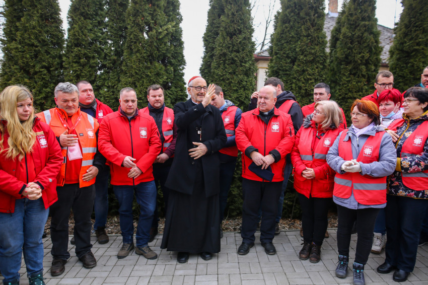 Az udvaron megáldotta a Karitász munkatársait, és Ferenc pápa vasárnapi beszédét idézve az újságíróknak is megköszönte fontos munkájukat, a tájékoztatást.