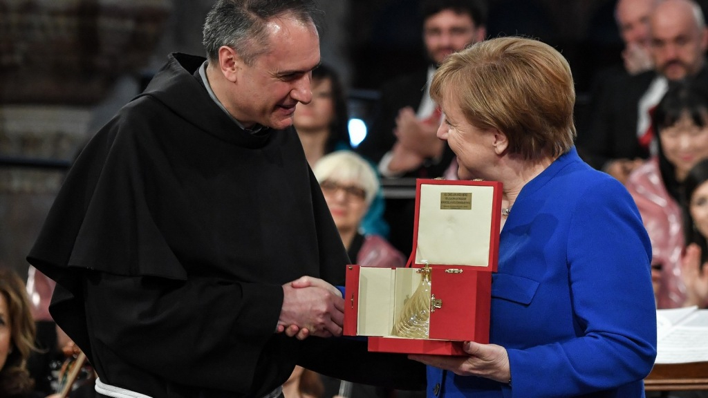 Enzo Fortunato, az Assisi Szent Ferencről elnevezett bazilika sajtóosztályának vezetője szerint Angela Merkelt a szíriai menekültek befogadásában és támogatásában kifejtett erőfeszítéseiért tüntették ki a Béke lámpása díjjal.
