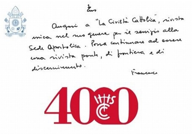 A La Civiltà Cattolica szerkesztőivel nemrégiben találkozott Ferenc pápa a lap 4000. számának megjelenése alkalmából. Ekkor így fogalmazott: a folyóiratnak nem csupán a katolikus eszmék védelme a feladata, hanem az is, hogy nyughatatlan, nyitott, képzeletgazdag lélekkel tegyen tanúságot Krisztusról a világban. Arra biztatta a szerkesztőket, hogy építsenek hidakat a társadalom peremén élő emberek felé; a most induló idegen nyelvű kiadások tágítják a horizontot, és segítenek párbeszédet teremteni a világ különböző pontjain élőkkel.