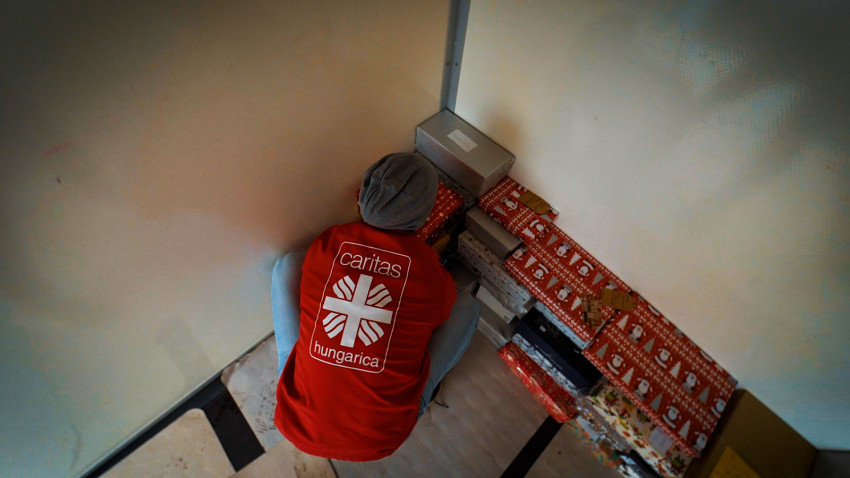Csütörtökön az egyházmegye intézményeiben meghirdetett akció során összegyűlt szeretetdobozokat szállították a központba.