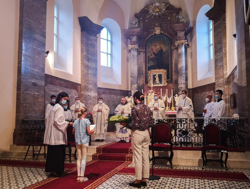 A hívek nevében Bajnok Zoé köszönte meg a ferences szerzetesnek, hogy elfogadta a meghívást a búcsúra.