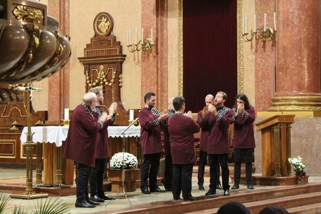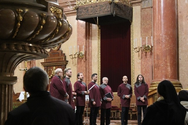 A szombathelyi koncerten a nagyvilág különböző zugaiból származó szakrális és folklorisztikus zeneműveket, valamint ezek hatására íródott kompozíciókat hallhatott a székesegyház közönsége – óorosz, bolgár, szír, hindi szakrális énekeket énekelt a férfikar.