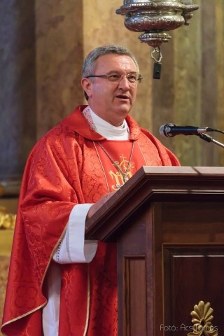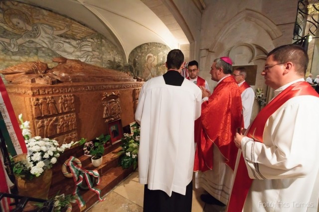 A megyéspüspökkel Németh László általános püspöki helynök, Mogyorósi Márk püspöki titkár és szertartó, valamint Marics István püspöki irodaigazgató, városplébános koncelebrált; a szertartás végén együtt imádkoztak a vértanú püspök sírjánál.