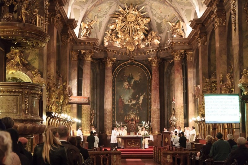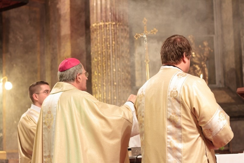 A szertartáson koncelebráltak Németh László általános püspöki helynök, Lukácsi Zoltán szemináriumi rektor, Juhos Imre szemináriumi spirituális, Boros Károly nyékvárkonyi plébános, Zsebedics József aranymisés győr-szigeti plébános, Németh István peresznyei plébános, Marics István városplébános és Kovács Gergő Vilmos káplán.