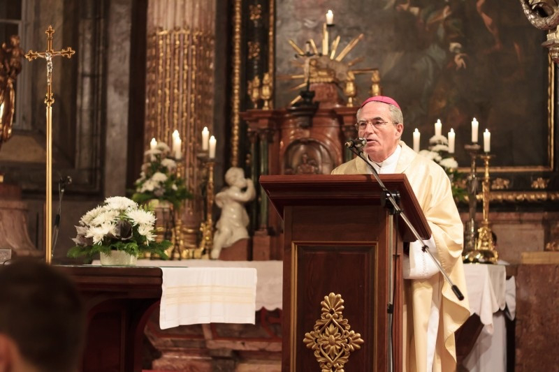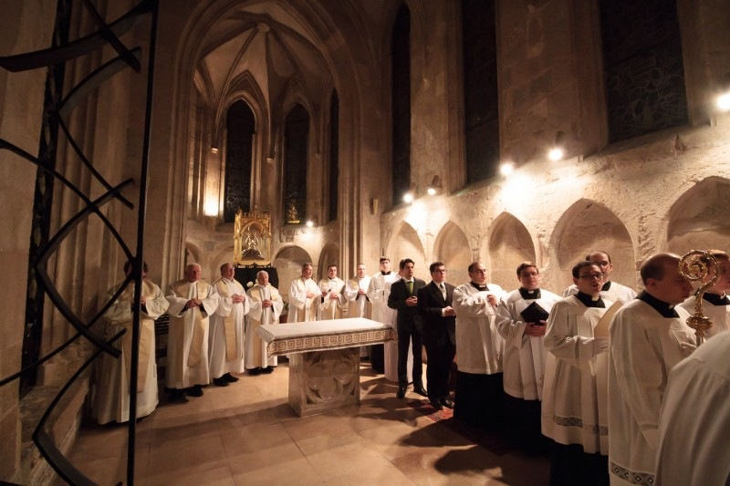 A liturgia végén a papság és az asszisztencia koszorút helyezett el Boldog Apor Vilmos szarkofágjánál a Héderváry-kápolnában, és a jelen lévő hívekkel együtt imádkoztak a vértanú püspök szentté avatásáért.