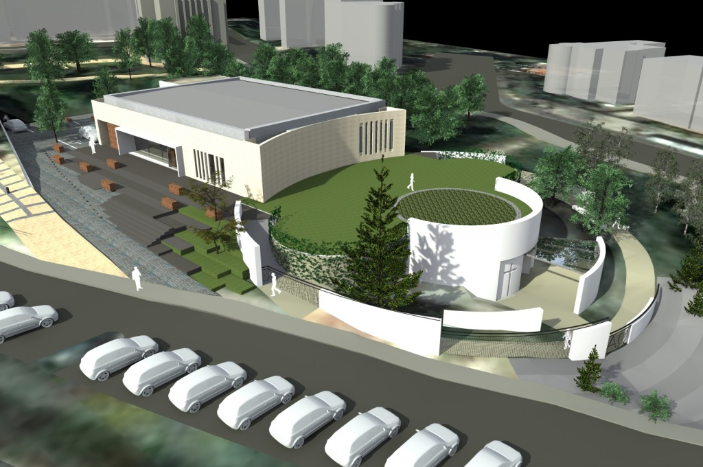 A telken magasabban elhelyezkedő, önálló szerkezettel megépített csarnokrészből alakítják ki Müller Ferenc tervei alapján a közösségi házat. Györgydeák Márton plébános elmondta, hogy az új épület a vértanú püspök, Apor Vilmos nevét viseli majd, akinek szobra is áll a téren. A közösségi ház és az urnatemető, vagyis az ingatlan profán és szakrális funkciói térben is elkülönülnek. Az egykori altemplom fölött a kör alakú lapos tetőn kis park és keresztút kialakítását tervezik.
