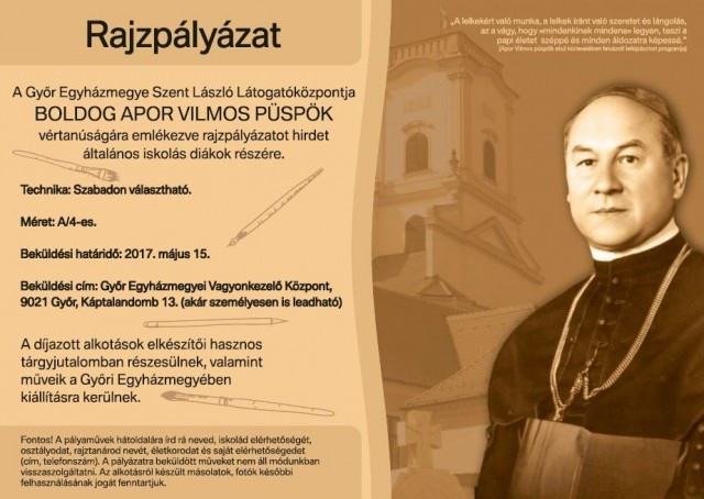 A szabadon választott technikával, maximum A4-es méretben elkészült rajzokat május 15-ig a Győri Egyházmegyei Vagyonkezelő Központ (9021 Győr, Káptalandomb 13.) címére lehet elküldeni vagy személyesen leadni.