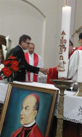 A főpásztort Tóth Tibor igazgató, valamint a plébániai tanácsadó testület alelnöke köszöntötte.