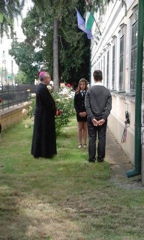 A megemlékezés koszorúzással ért véget, melynek során Veres András megyéspüspök, Takács Péter plébános, Németh Gergely polgármester, Funtek János jegyző, Tóth Tibor igazgató és Varga Viktória igazgatóhelyettes helyezte el az emlékezés és a tisztelet virágait.
