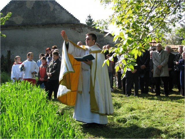 Április 27-én Csehimindszenten a templom előtti téren kezdődött a szertartás: Déri Péter atya a négy égtáj felé fordulva megáldotta a helyi földeket, vetéseket, gyümölcsösöket és szőlőket a jó termés reményében. A szertartás után a hívek hangos énekszóval vonultak a templomba, ahol a megszokott módon folytatódott a szentmise.
