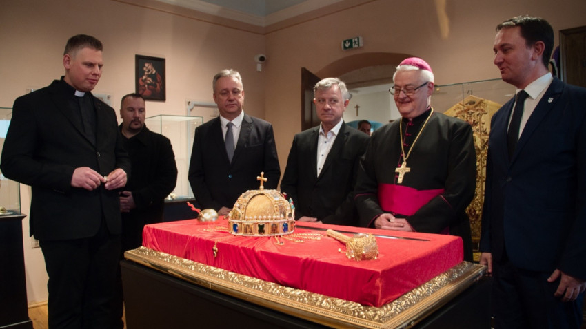 Kókány András, a kiállítás főszervezője, a keceli Pintér család barátja köszönetet mondott az adományozónak, és azt is elmondta, annak idején Pintér József, a Pintér Művek alapító tulajdonosa volt az, aki finanszírozta az USA-ból Magyarországra visszaérkező Szent Korona restaurálását, illetve az ahhoz vezető évtizedeket felölelő kutatást. „A korona a nemzeti összetartozás jelképe volt mindig is” – hangsúlyozta.