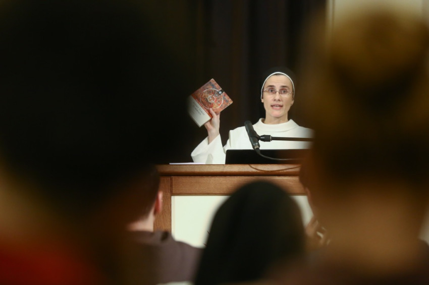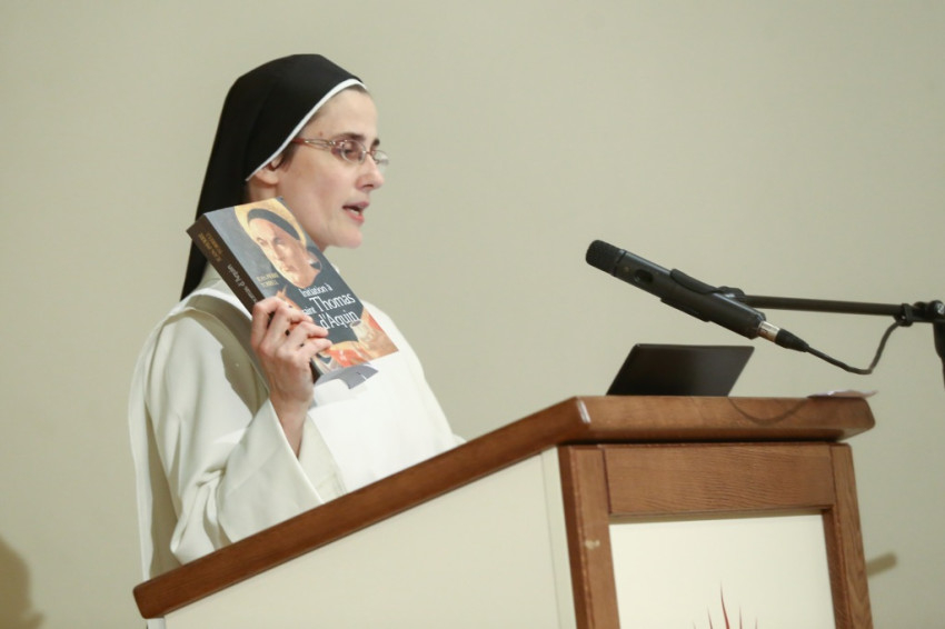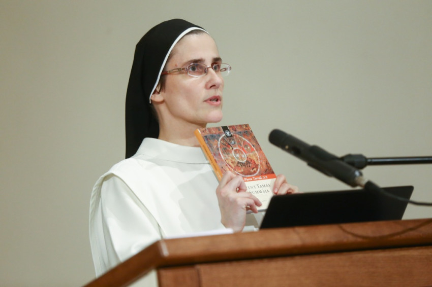 Március 7. Aquinói Szent Tamás halálának napja, ezért döntöttünk úgy, hogy ekkor beszélgetünk fő művéről, a Summa theologiae-ről – fogalmazott köszöntőjében Deák Hedvig domonkos szerzetes, egyetemi tanár.