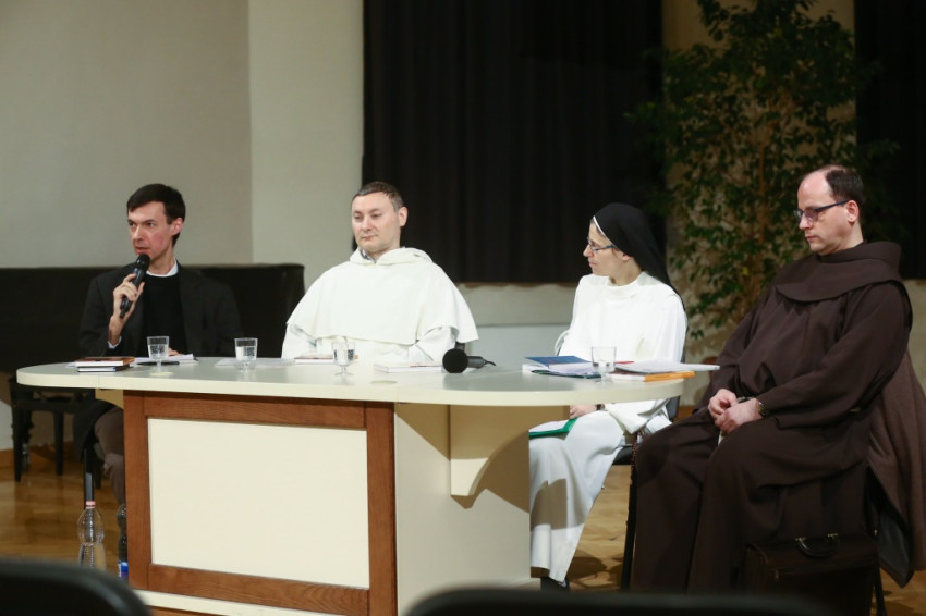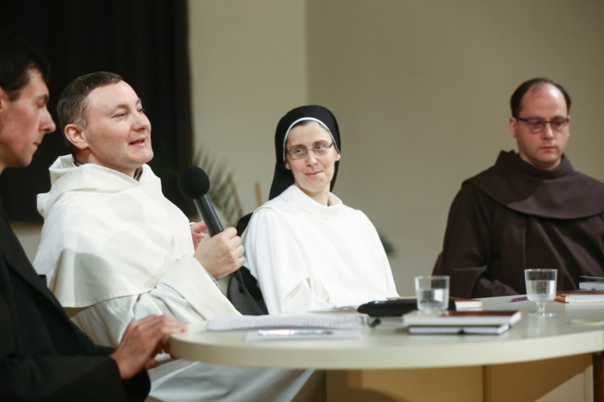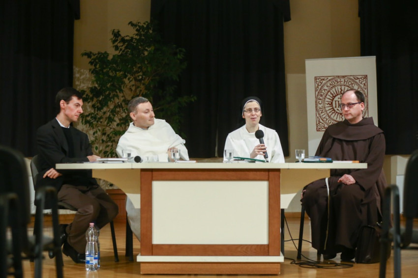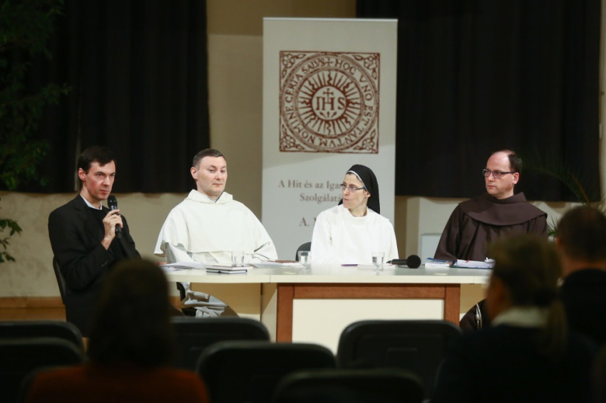 A könyvbemutató után Deák Hedvig vezetett kerekasztal-beszélgetést Bagyinszki Ágoston ferences és Szabó Bertalan domonkos szerzetesek, egyetemi adjunktusok, valamint Bartók Tibor jezsuita, a Sapientia Szerzetesi Hittudományi Főiskola tudományos munkatársa részvételével.