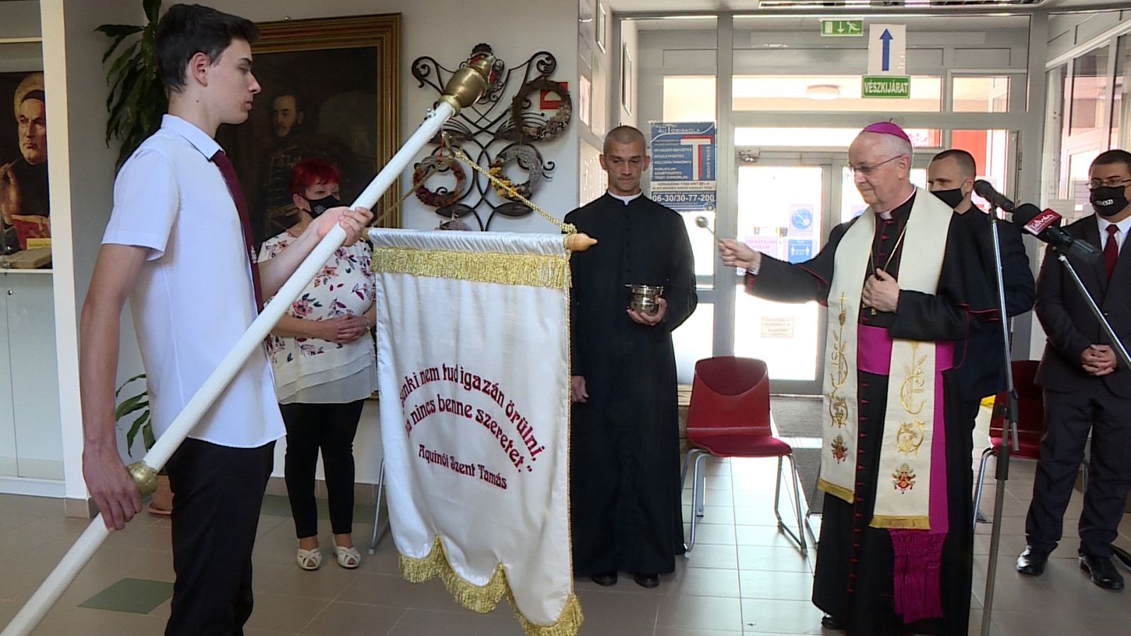 Beszéde végén a főpásztor megáldotta az osztályzászlókat, melyeket az osztályok képviselői elhelyeztek a tantermekben.