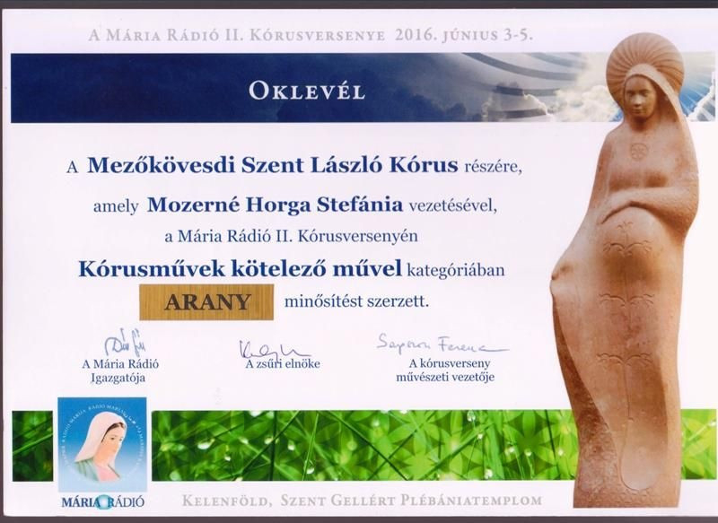 A mezőkövesdi Szent László énekkar június 5-én, vasárnap a Mária Rádió II. Kórusversenyének harmadik napján szerepelt a Budapest-Kelenföldi Szent Gellért-templomban.