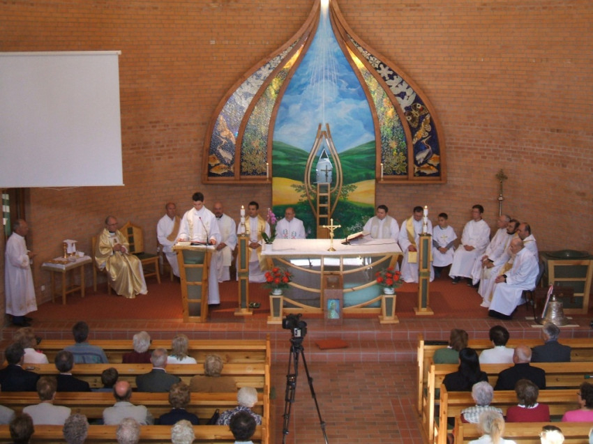 A szentmisén részt vettek Kalapáty János atya korábbi szolgálati helyeiről: Ladról, Tapsonyból és Kőröshegyről, valamint környékeikről érkezők is, valamint a rokonok, barátok és paptestvérek.