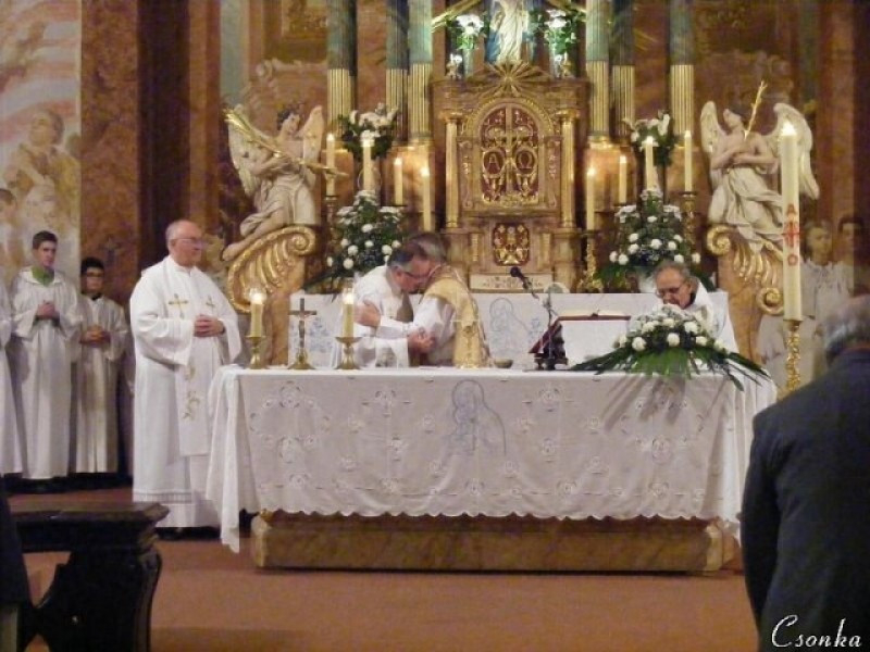 A szentmise elején Giffinger Mihály, a Plébániai Tanácsadó Testület elnöke köszöntötte László atyát, felidézve a Mosonban eltöltött tizenhat évének szép emlékeit.
