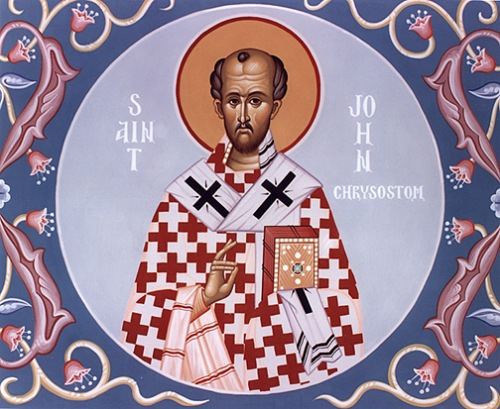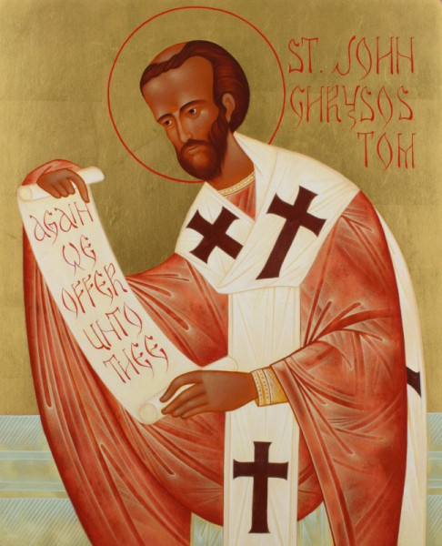 Aranyszájú Szent János (Joannész Khrüszosztomosz, 344/347–407. szeptember 14.) a kisázsiai Antiochiában, a mai Törökország területén született, arisztokrata család gyermekeként. A kor legnagyobb pogány szónokának, Libaniosznak volt tanítványa.