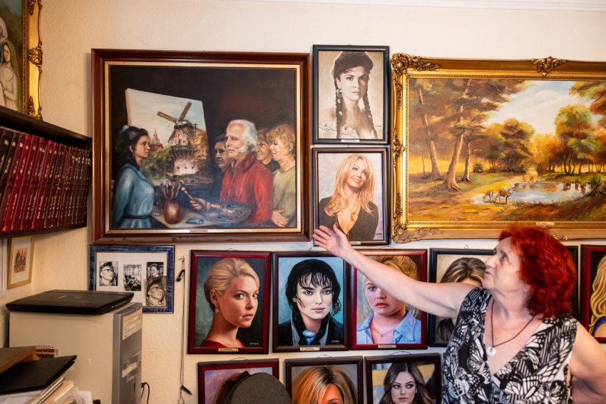 Sorra mutatja a különböző helyiségekben elhelyezett képeit, majd betérünk az utcafronton lévő szobába, ahol a férje vár minket. Felkészülten pontosítja a dátumokat és az adatokat, amelyek eddig elhangzottak, hiszen ő lett Veronika menedzsere, és mondhatni, történetírója.