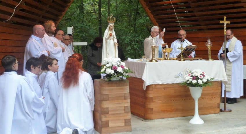 Az ünnepi szentmise körmenettel zárult, amelyet egész napos engesztelő imádság követett a kegyhelyen.