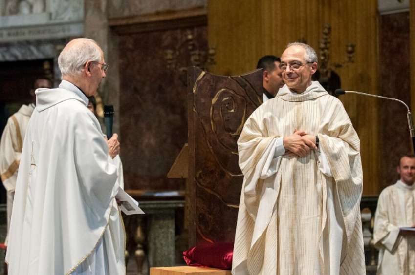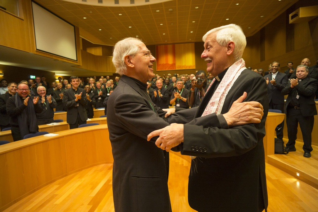 Adolfo Nicolás, a leköszönő rendfőnök köszönti az új generálist