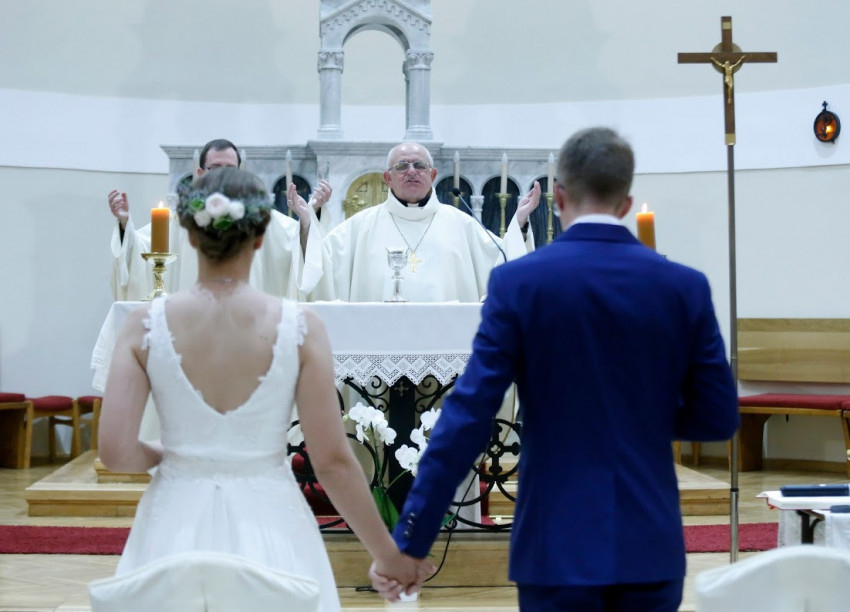 Május második vasárnapján már érezhető volt a picit felszabadultabb, nyugodtabb légkör az országban. Vidéken sorra nyitottak ki – a megfelelő óvintézkedések és szabályok betartása mellett – a cukrászdák, éttermek, kávézók. A parkokba, a folyópartokra, az utcákra lassan kimerészkedtek az emberek, akik olyan régóta áhítják már a közösség élményét a szabad ég alatt. A kaposvári Szent Imre-templomban Kling Márk, a Nemzetközi Eucharisztikus Kongresszus munkatársa feleségül vette Hegedüs Esztert. A padsorok nem roskadoztak a virágoktól. Nem volt vörös szőnyeg, sem koszorúslányok. Nem szólt a nagy orgona. Az esemény ünnepélyessége nem a külsőségekből, hanem Eszter és Márk meghatottságából, tisztaságából és egymás iránti szerelméből fakadt.