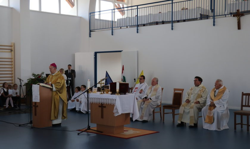 A szentmise után Mail József apát, gazdasági helynök beszédében elmondta, a közel 400 millió forintból megvalósult projektet a magyar állam 250 millió forinttal, a Veszprémi Főegyházmegye pedig több mint 130 millió forinttal támogatta; hátravan még a tornaterem belső berendezése. A helynök hangsúlyozta, nagyon fontos, hogy a főegyházmegye fenntartásában működő intézményekben a katolikus oktatás mellett a testnevelés is magas szintű legyen. A gazdasági helynök Avilai Nagy Szent Terézt idézte: „Tegyél valami jót a testeddel, hogy a lelked jól érezze magát benne.”