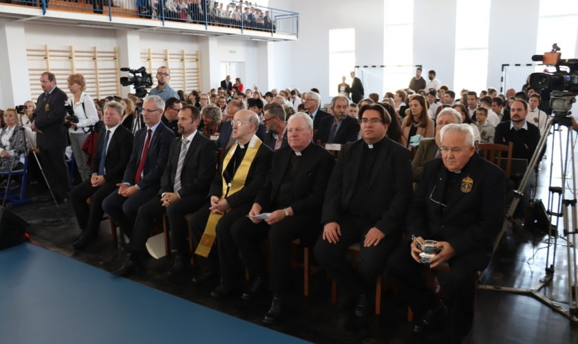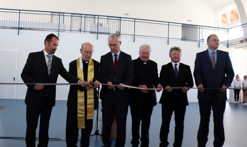 Az államtitkár beszéde után Márfi Gyula érsek megáldotta a létesítményt, majd az egyházmegye, a kormány és a beruházók képviselői átvágták a nemzeti színű szalagot, felavatva a tornacsarnokot.