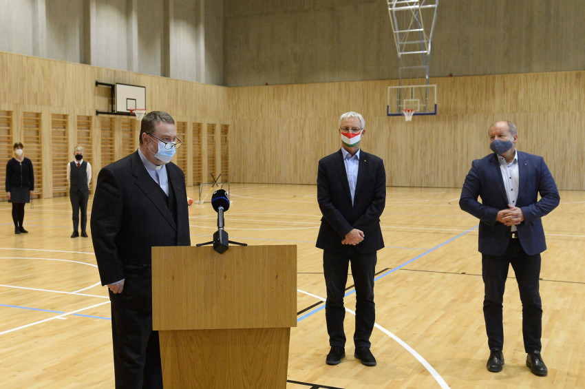 Soltész Miklós, a Miniszterelnökség egyházi és nemzetiségi kapcsolatokért felelős államtitkára arról beszélt az ünnepségen, hogy az egyházi iskolák és a társadalom nagyon nagy része a normalitást, a teremtett világ rendjét szeretné követni, amit a mai társadalomban viszont néhányan meg akarnak kérdőjelezni. Ezért a kormány egyre nagyobb mértékben támogatja az egyházi oktatást, nevelést – mely a normalitást kívánja továbbadni a következő nemzedékeknek – akár iskolák felújításával, akár tornacsarnokok építésével, hogy ott is az egészséges életmódhoz, a sportoláshoz, és ezen keresztül a természet és a teremtett világ szeretetéhez vezessük a fiataljainkat.