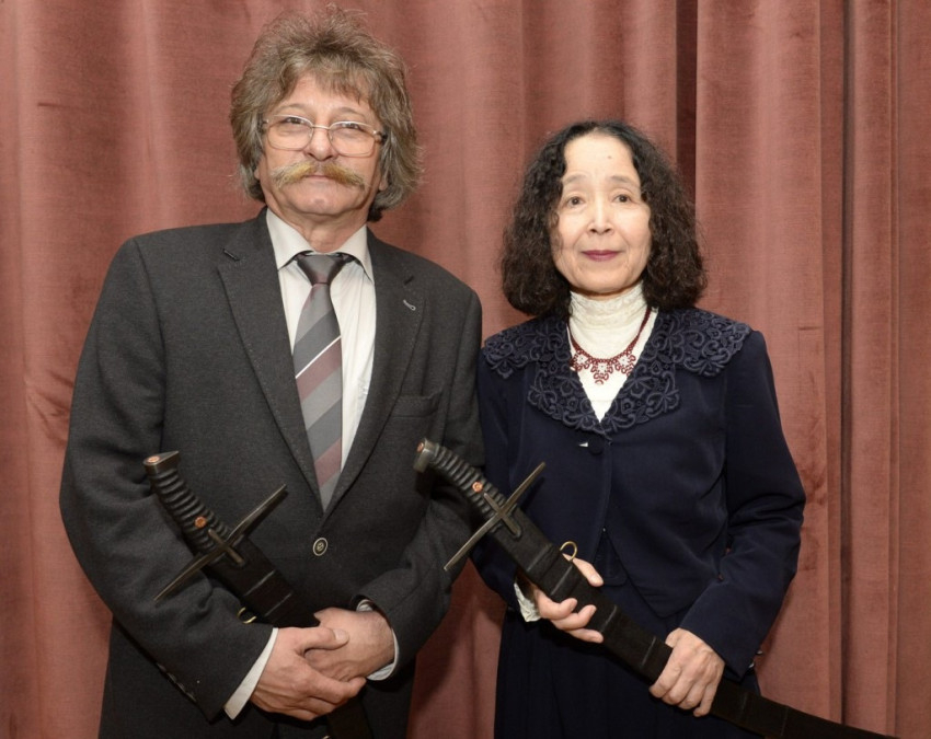 „Akkor találkoztam a magyar irodalommal, amikor Ady Endre Párizsban járt az ősz című versét meghallottam. Elvarázsolt a költemény különleges zeneisége. Hatására kezdtem Japánban magyarul tanulni, később jött az életembe József Attila. A versfordítás számomra utazás egy csodálatos világba, és amikor meglátogatom azokat a helyeket, ahol Ady és József Attila élt, bennem is él ez a misztikus világ” – mondta Harada Kijomi, aki Zettwitz Sándor üzletembertől, az egyik támogató cég igazgatójától vette át az emlékkardot.