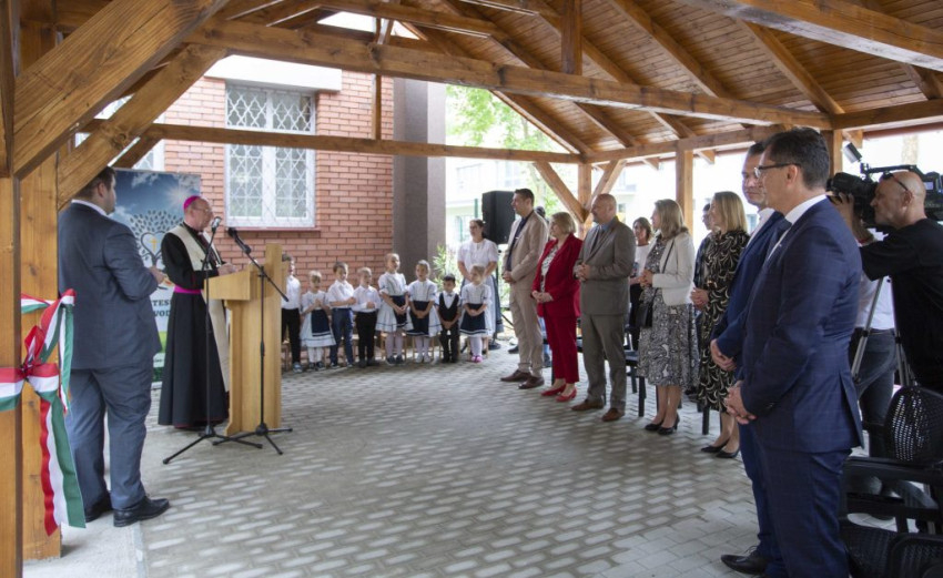 A gyermekek arca Isten arcát tükrözi vissza. Az a hivatásuk – mert már nekik is van –, hogy kövessék Jézust, akiről azt írja a Szentírás: »Jézus pedig növekedett bölcsességben, korban és kedvességben Isten és az emberek előtt.« (Lk 2,52) A gyermekeknek is ez a dolguk, nekünk pedig az, hogy ebben segítsük őket, biztosítva ehhez minden körülményt” – fogalmazott Palánki Ferenc megyéspüspök, majd megáldotta az új játszóteret.