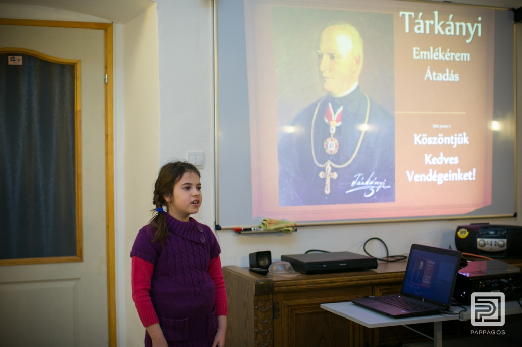 Farkas Réka köszöntötte a jelenlevőket, s méltatta a díj alapítóját, Papp László plébánost: „Bizonyára a Szentlélek sugallatára támadt a díj megalapítására vonatkozó építő javaslata. A hitét példamutató módon élő testvéreknek évente odaítéli – a képviselőtestület javaslatára – e nemes Tárkányi Béla-díjat.”