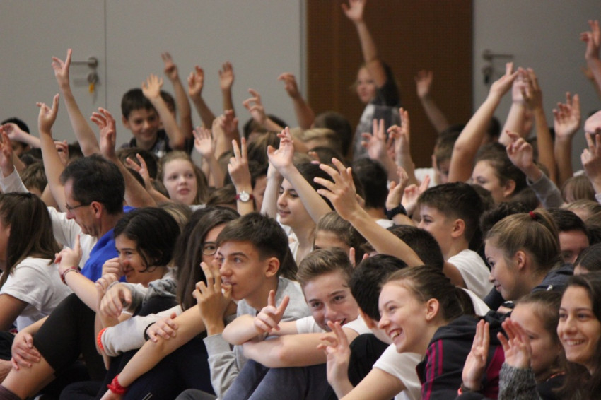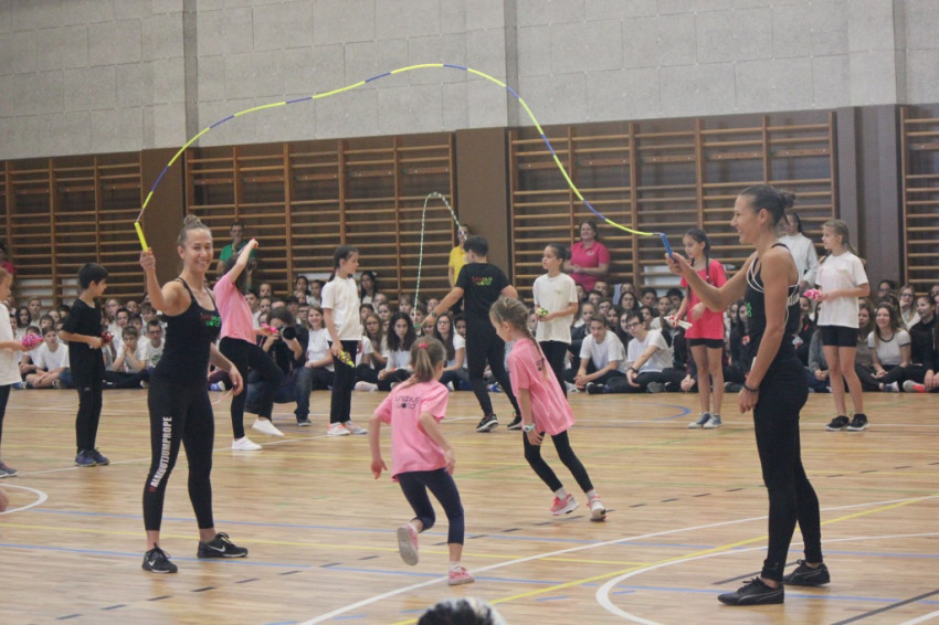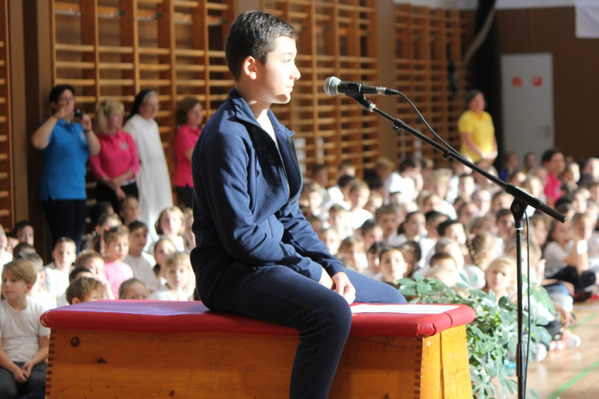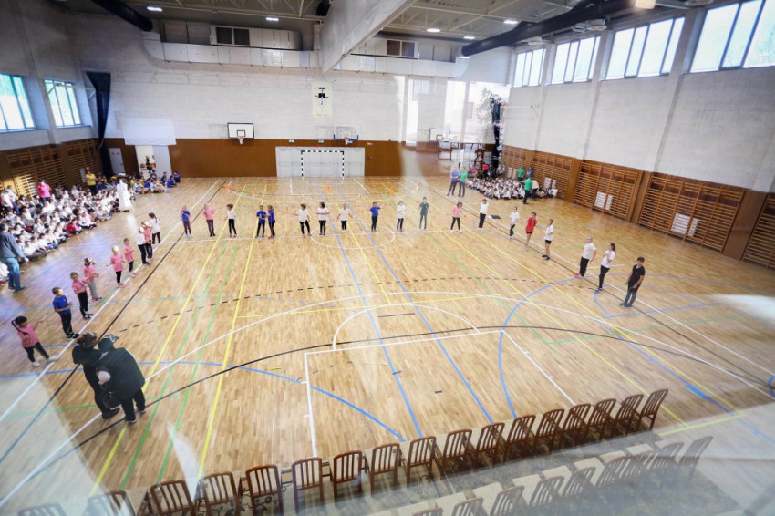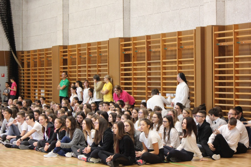 A szalagátvágás után bent a tornateremben folytatódott az ünnepség. A köszöntő beszédek közül nagy népszerűségnek örvendtek Hedvig nővér szavai a gyerekek között: ő – a tréfás kollégák építkezéses Star Wars-videójától ihletve – a Csillagok háborújához hasonlította az életünk küzdelmeit, melyekhez sportolással, az új tornateremben szerezhetünk edzettséget és építhetjük a jellemünket is.