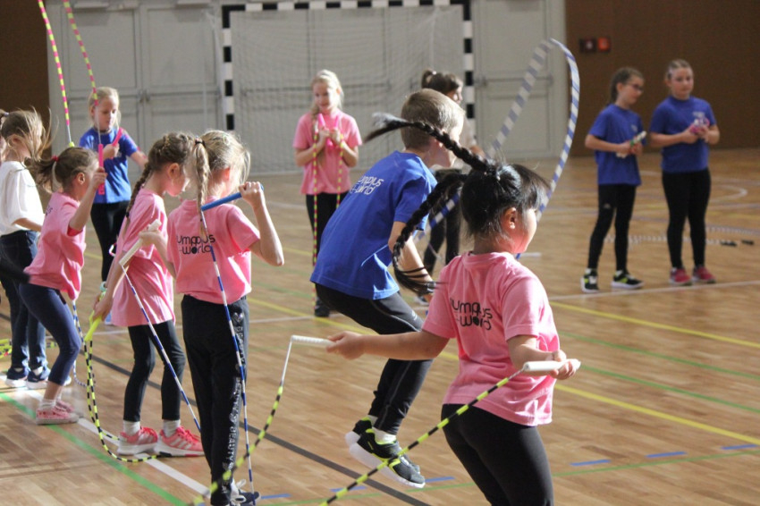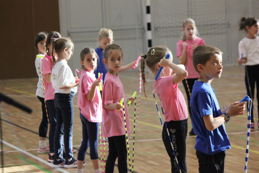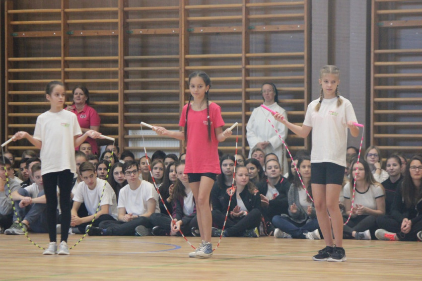 Az ünnep további részeként különböző sportágak képviselőit láthattuk: a kötélugrókat, táncosokat, kézilabdázókat és focistákat, a legkisebb triatlonisták biciklisbemutatót tartottak, a negyedikesek látványos sorversenyt mutattak be. Zárásként a hetedik évfolyam készült egy meglepetéssel: a domonkos rend címerét rakták ki óriási fekete-fehér lapokból. Ez a mozzanat kiválóan jelképezte a lényeget: a test és a lélek együtt alkotja az embert; a domonkos lelkiség, amit az iskola képvisel, nem marad a kápolna falai között. Magunkkal visszük a hétköznapi tevékenységekbe, a játékba, a versenyzésbe, így segít minden „árpád-házis” diákot és pedagógust Isten felé.
