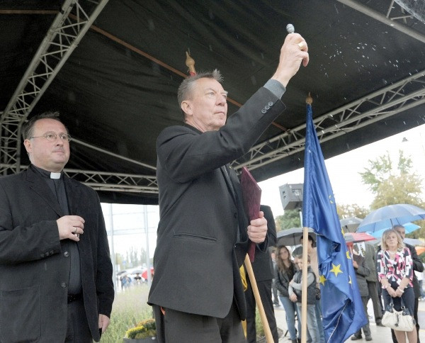 Beer Miklós, a Váci Egyházmegye püspöke szólt az egybegyűltekhez, majd megáldotta a hidat és névadója, Boldog Meszlényi Zoltán vértanú püspök emléktábláját.