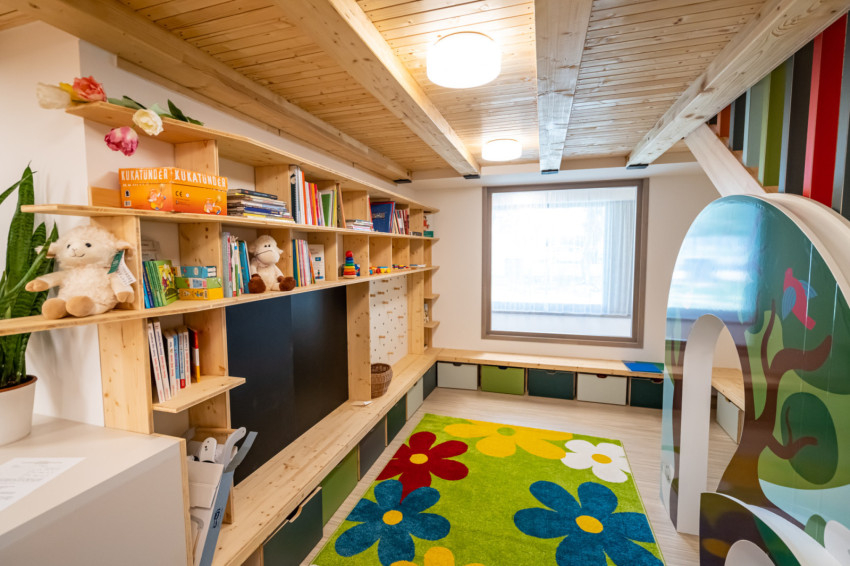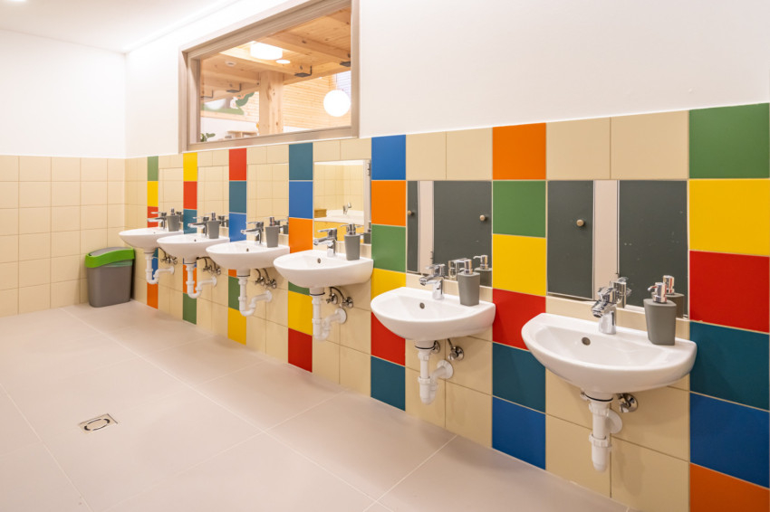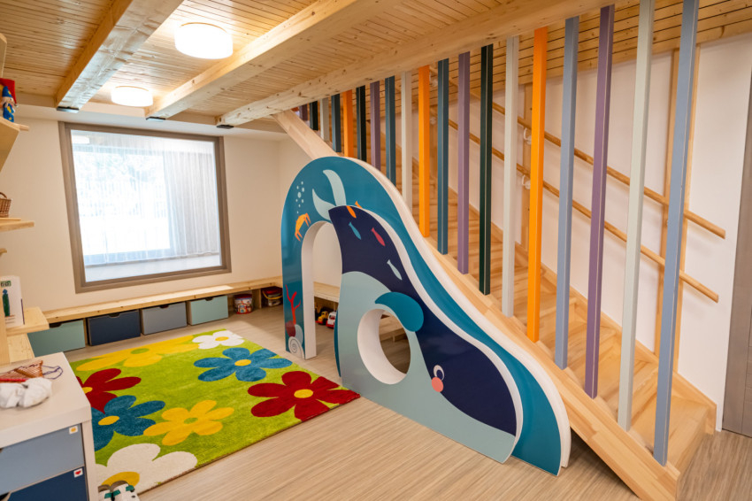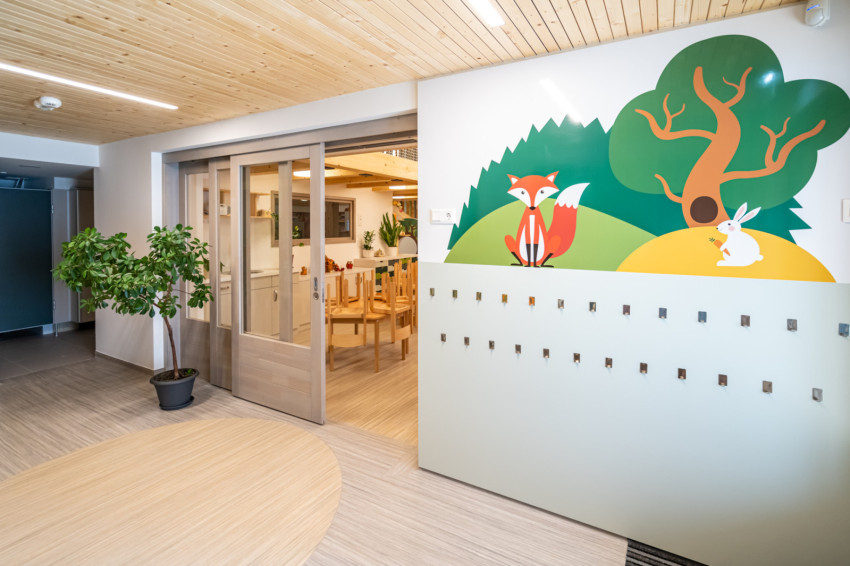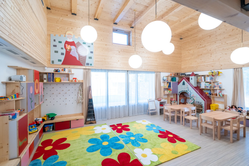 A négycsoportos óvoda csoportszobáit a Kiskastély épületéhez kapcsolódó, újonnan megépített északi és déli szárnyban helyezték el.