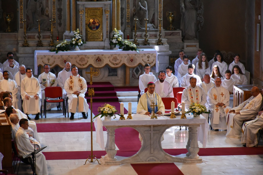 Homíliájában Schönberger Jenő püspök a Szűz Máriával kapcsolatos egyházi tanítást ismertetve kitért a Szűzanyáról szóló dogmákra.